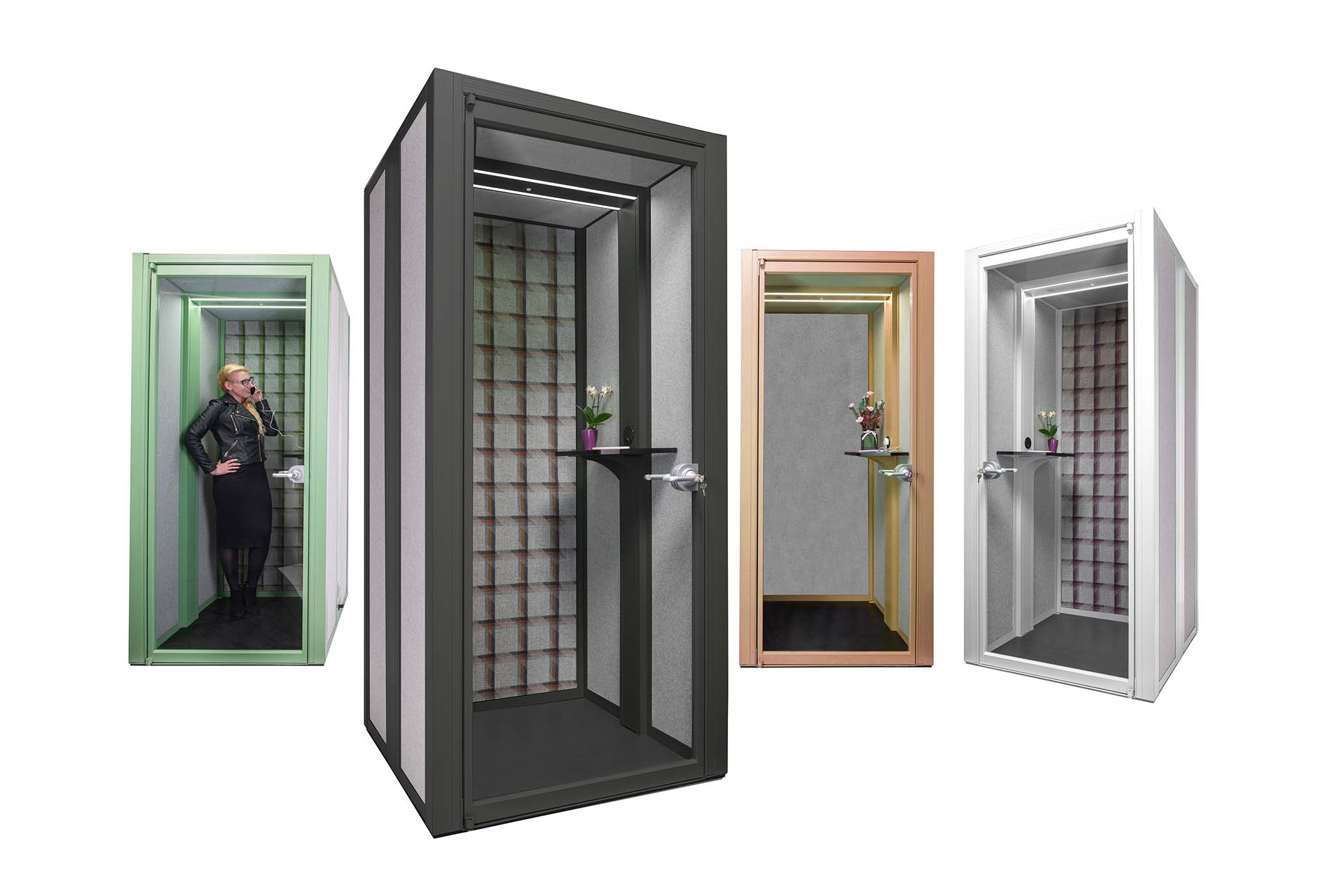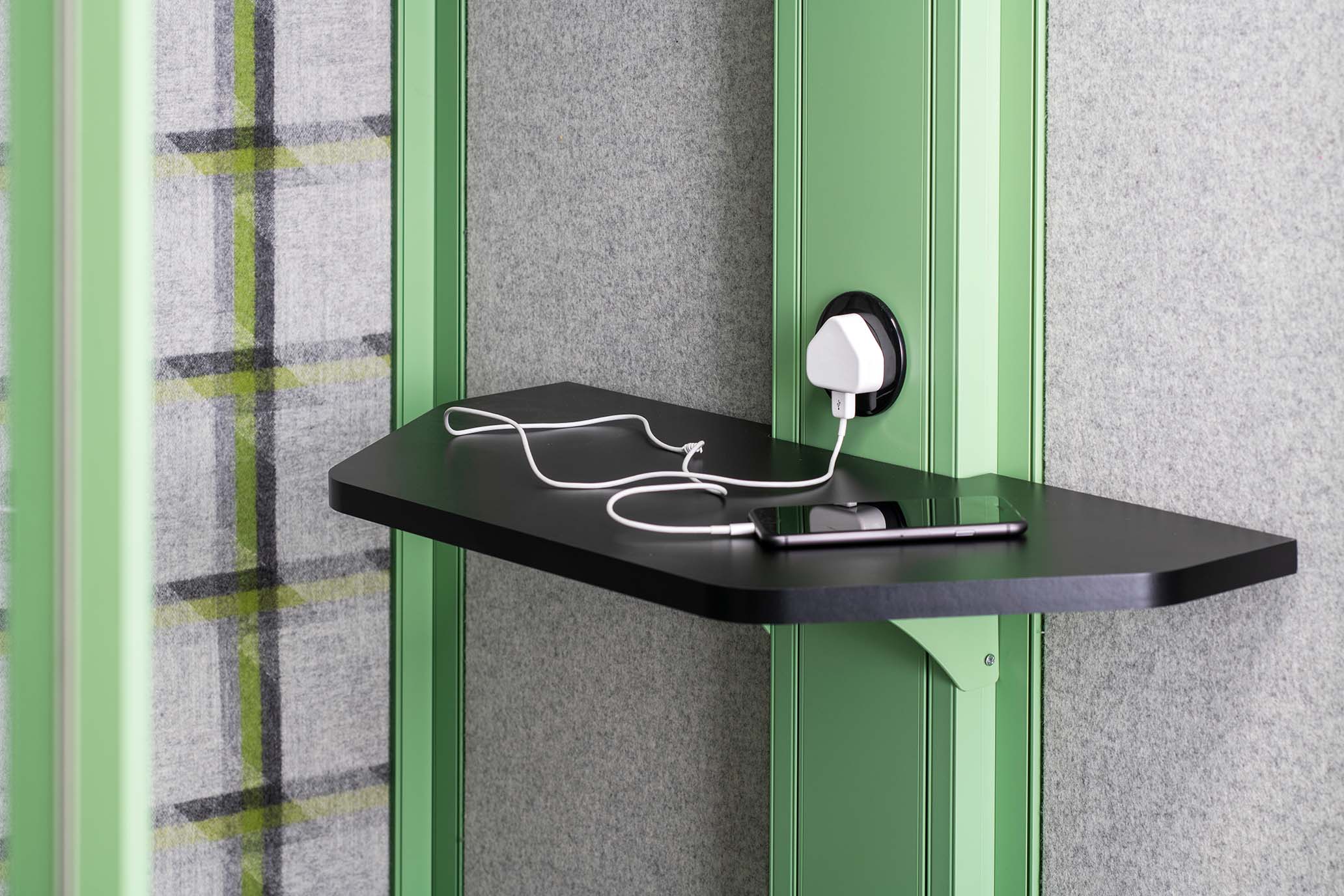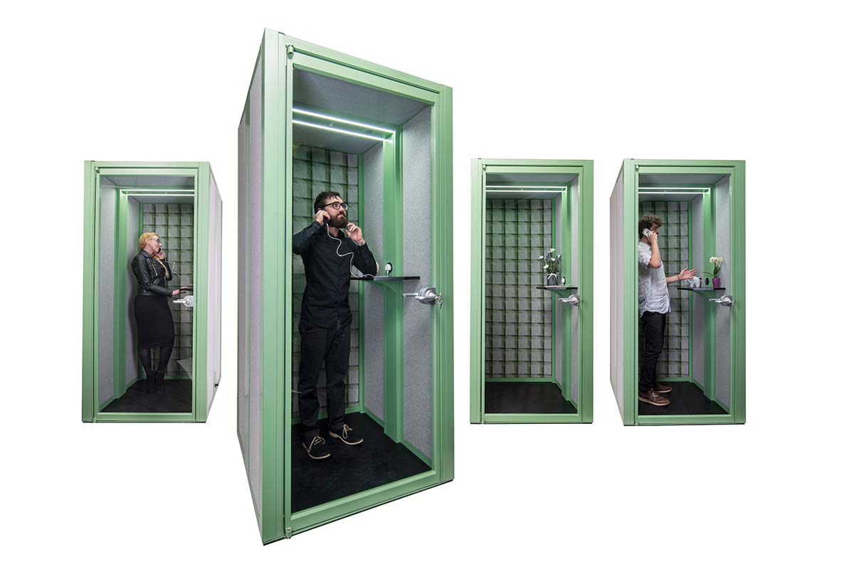 Rather than occupy a meeting pod or a side room, a phone booth offers a simple, acoustic solution with the small 1m2 footprint, making it an ideal space saving addition to the office. The phone booth is supplied as a complete unit with sound absorbing panels and ceiling, an integrated MFMDF black floor, and dual air circulator fans for optimised air flow. Available in a multitude of finishes to complement the surroundings or stand out as a focal product.