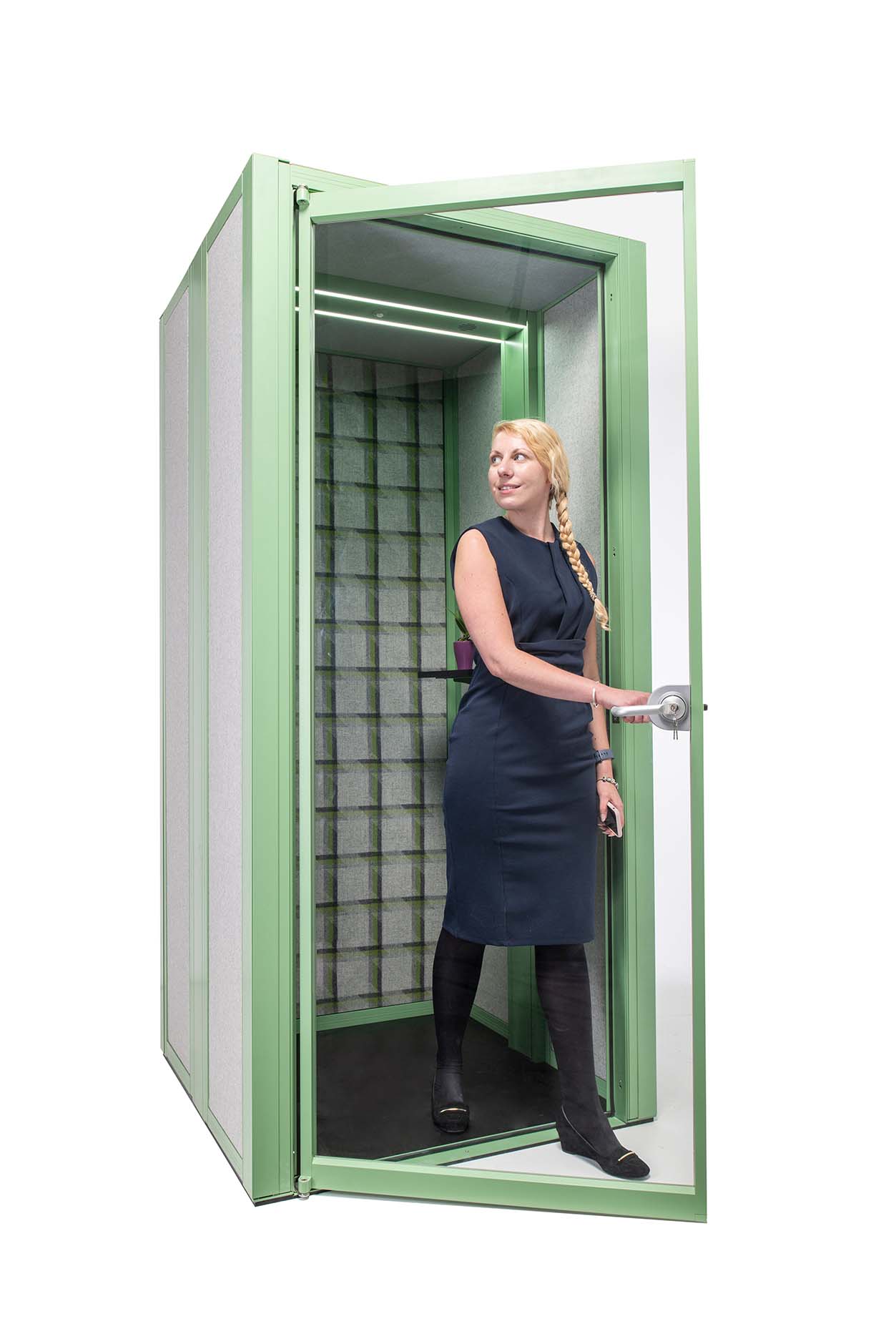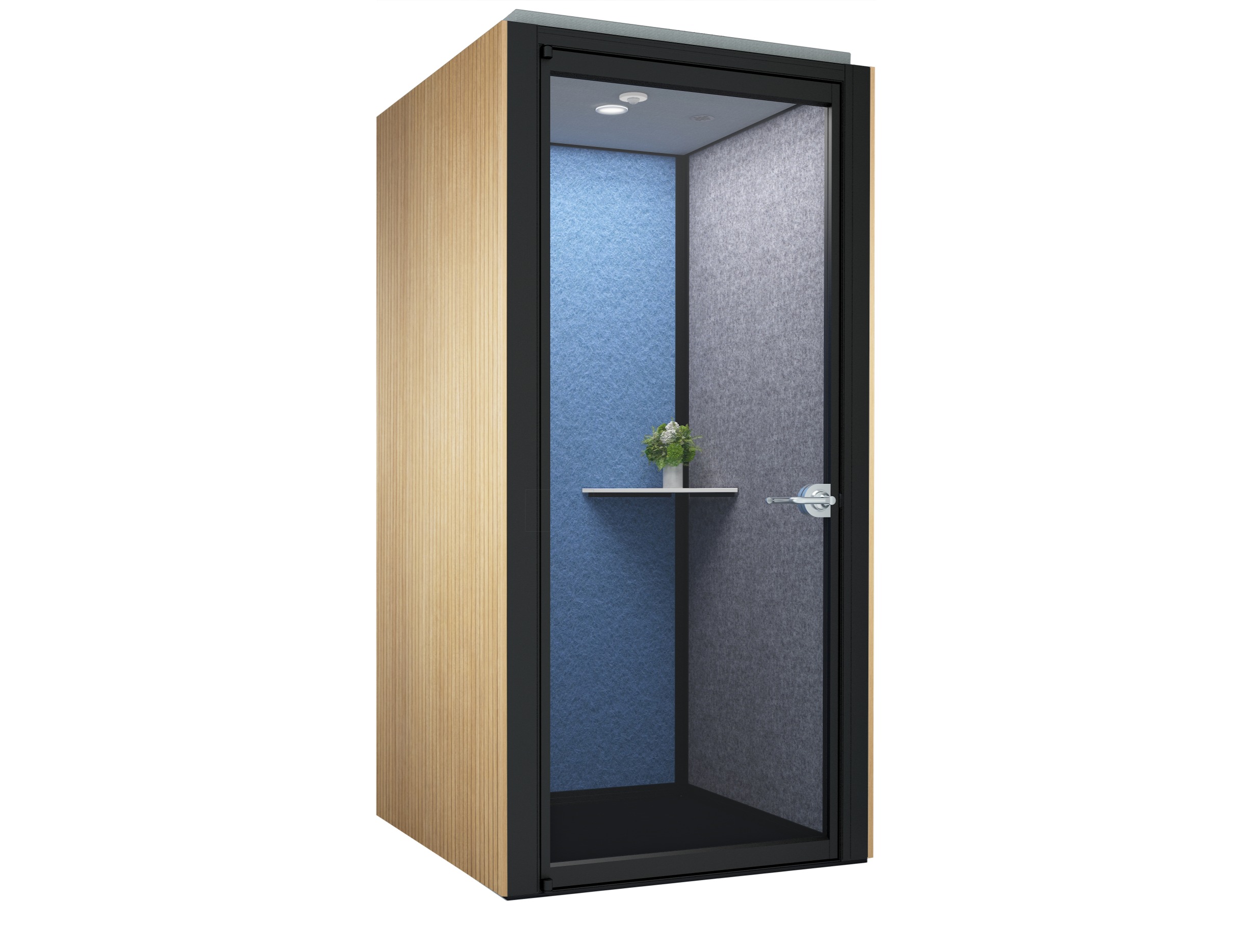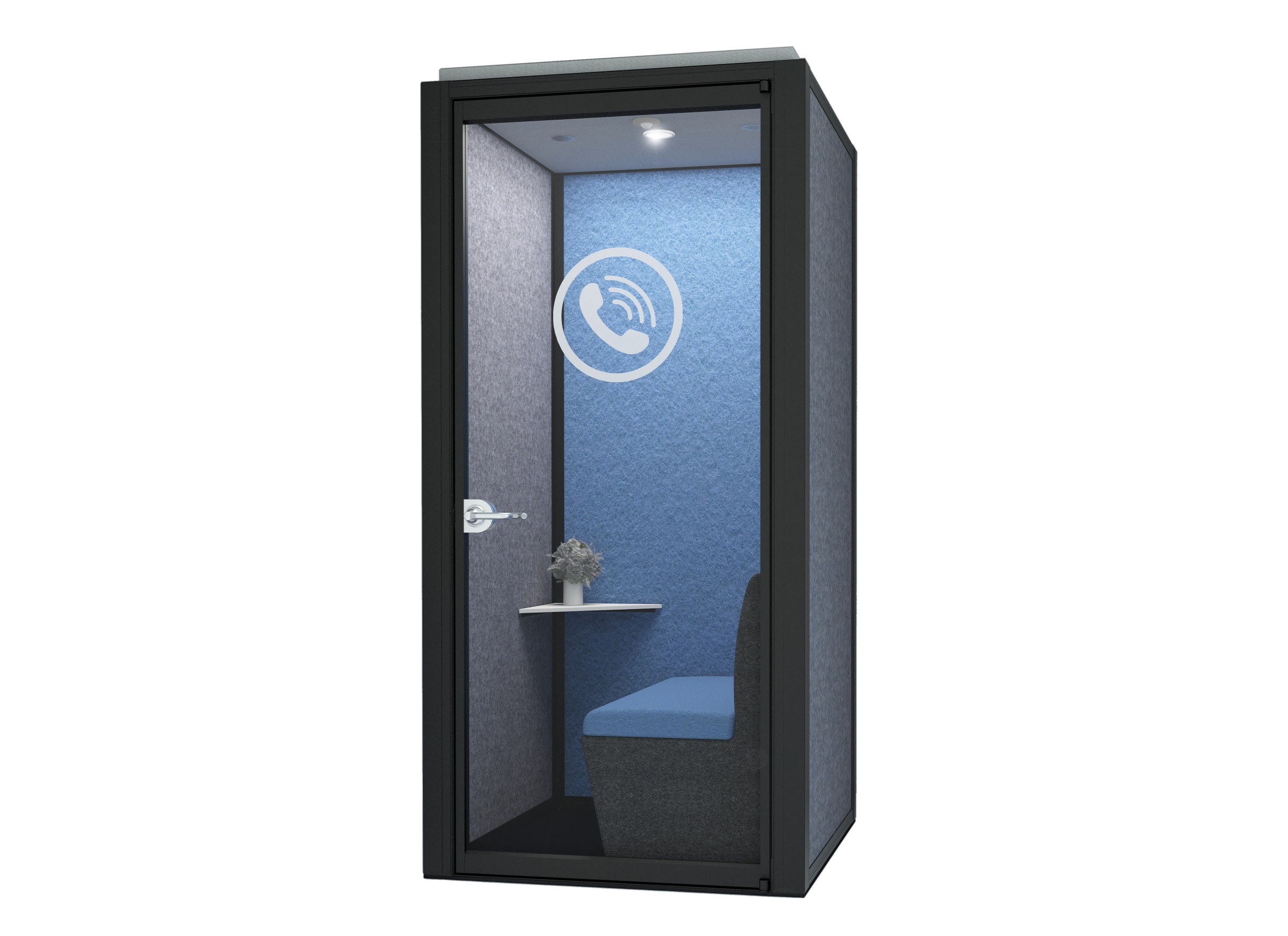 Rather than occupy a meeting pod or a side room, a phone booth offers a simple, acoustic solution with the small 1m2 footprint, making it an ideal space saving addition to the office. The phone booth is supplied as a complete unit with sound absorbing panels and ceiling, an integrated MFMDF black floor, and dual air circulator fans for optimised air flow. Available in a multitude of finishes to complement the surroundings or stand out as a focal product.