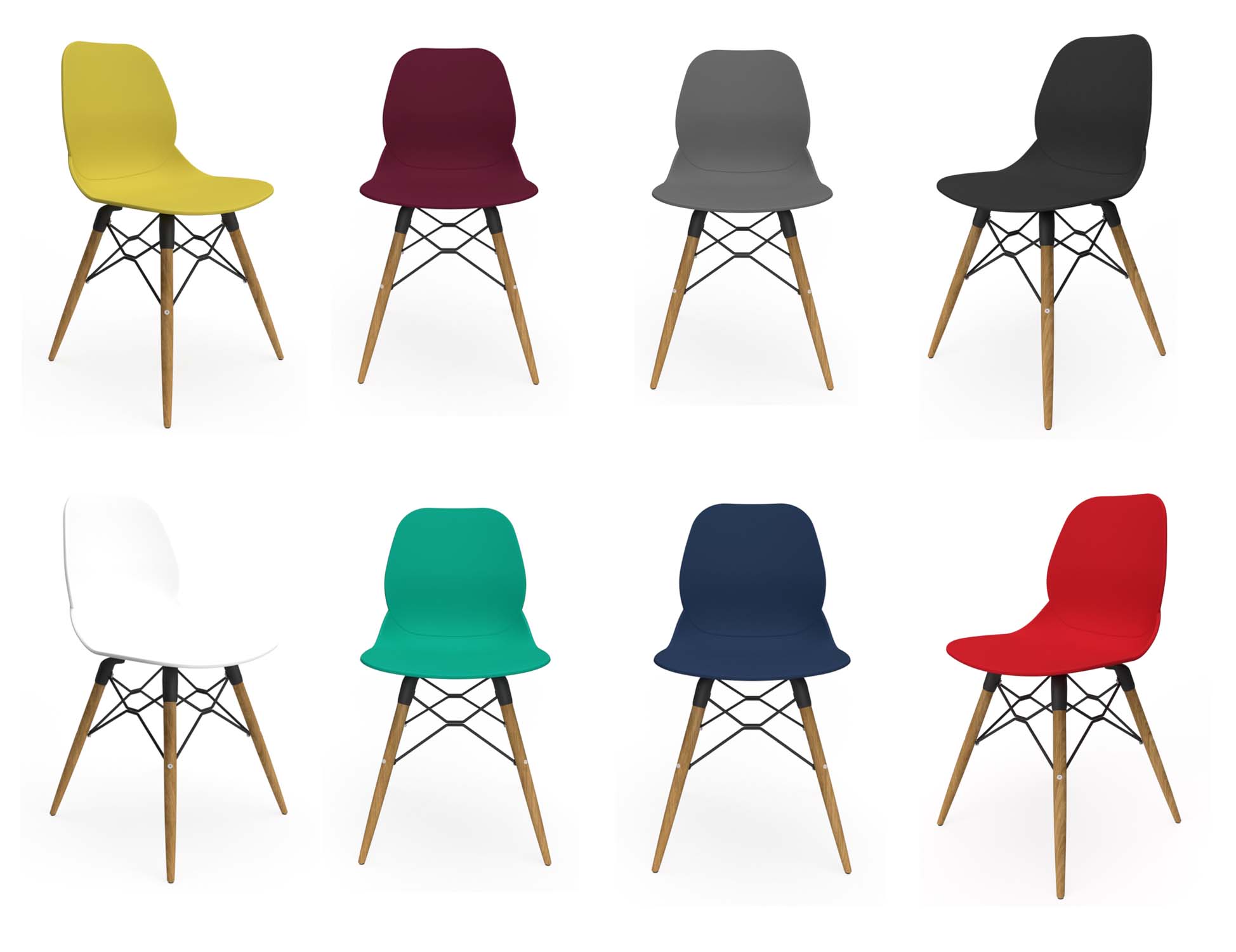 Mello chairs are made from strong thermo plastic in 6 colours. Optional seat pads are available. Stackable by 6.