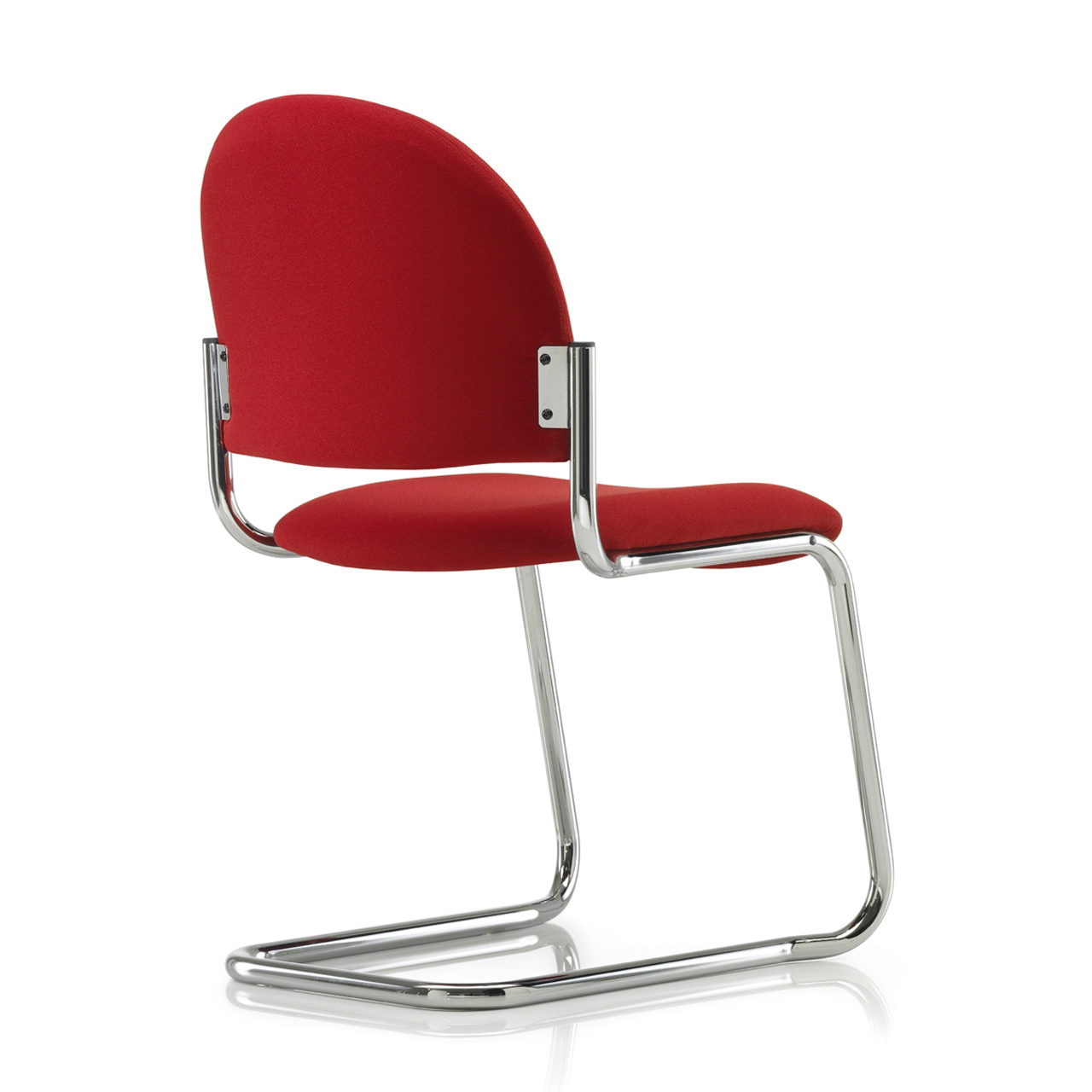 Cantilever stacking visitors chair Upholstered seat and back, Chrome frame, Hygiene Gap. For fabric options see downloads