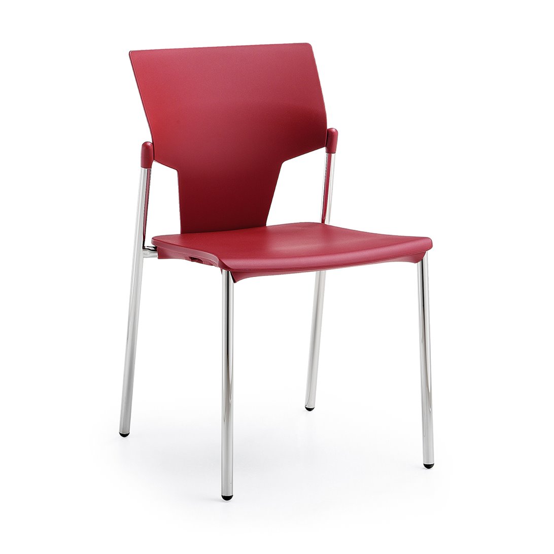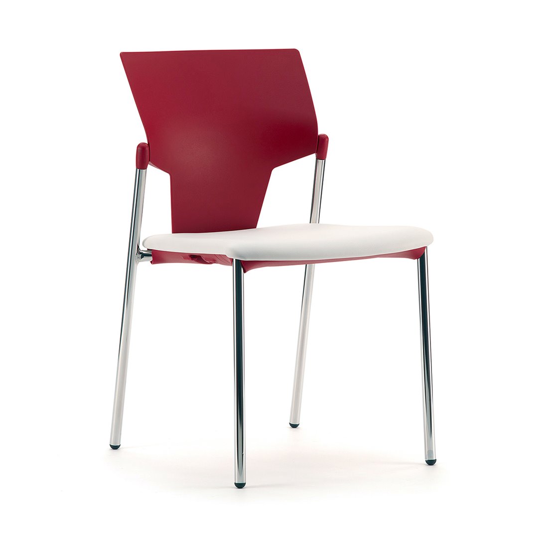 Four legged stacking visitors chair Upholstered seat, Plastic back Black frame. Options With or without arms White plastic back Upholstered seat and/or back Linking brackets For fabric options see downloads