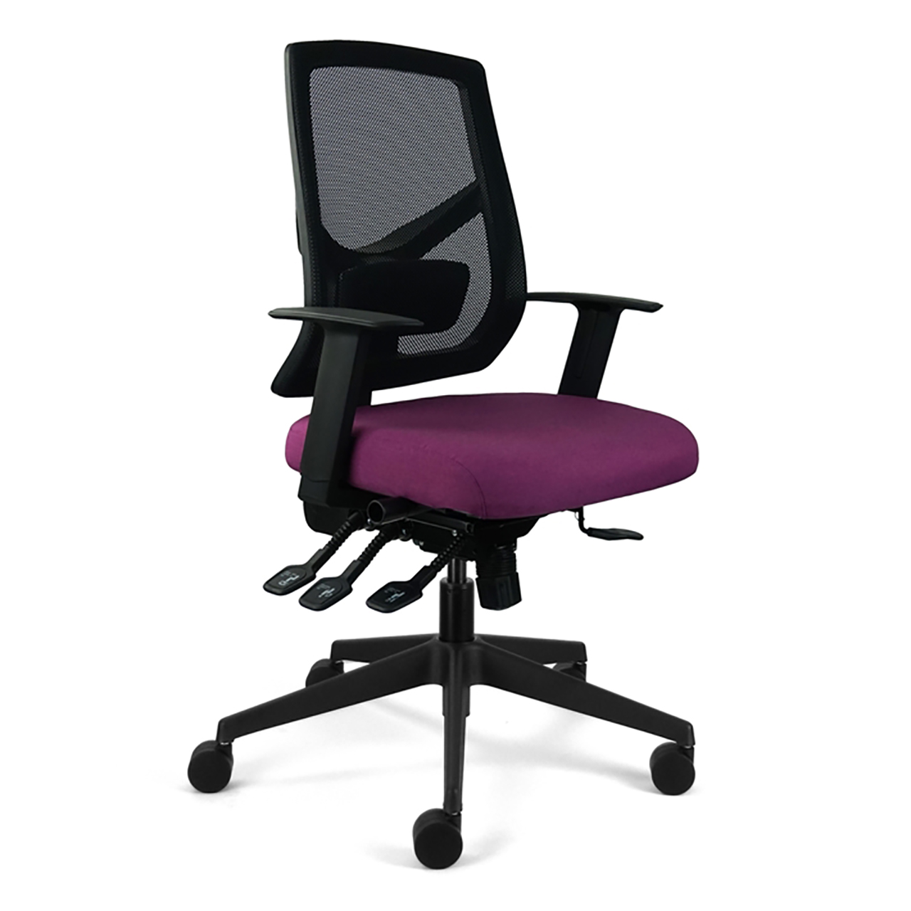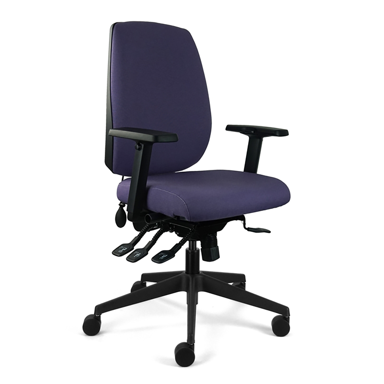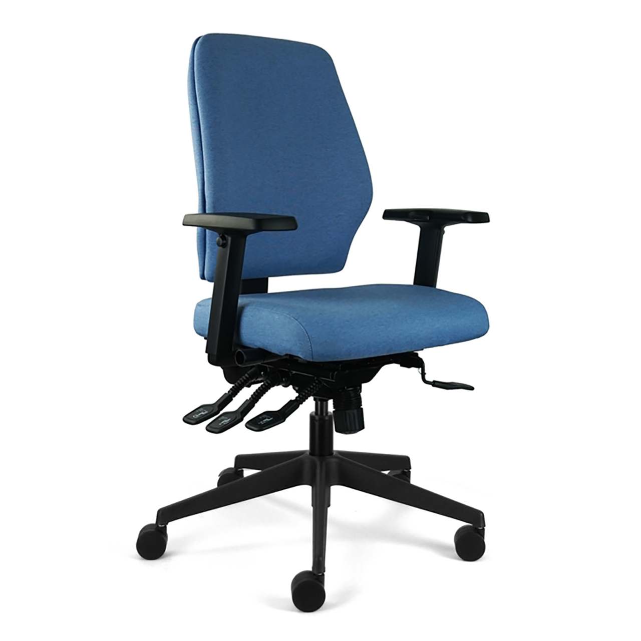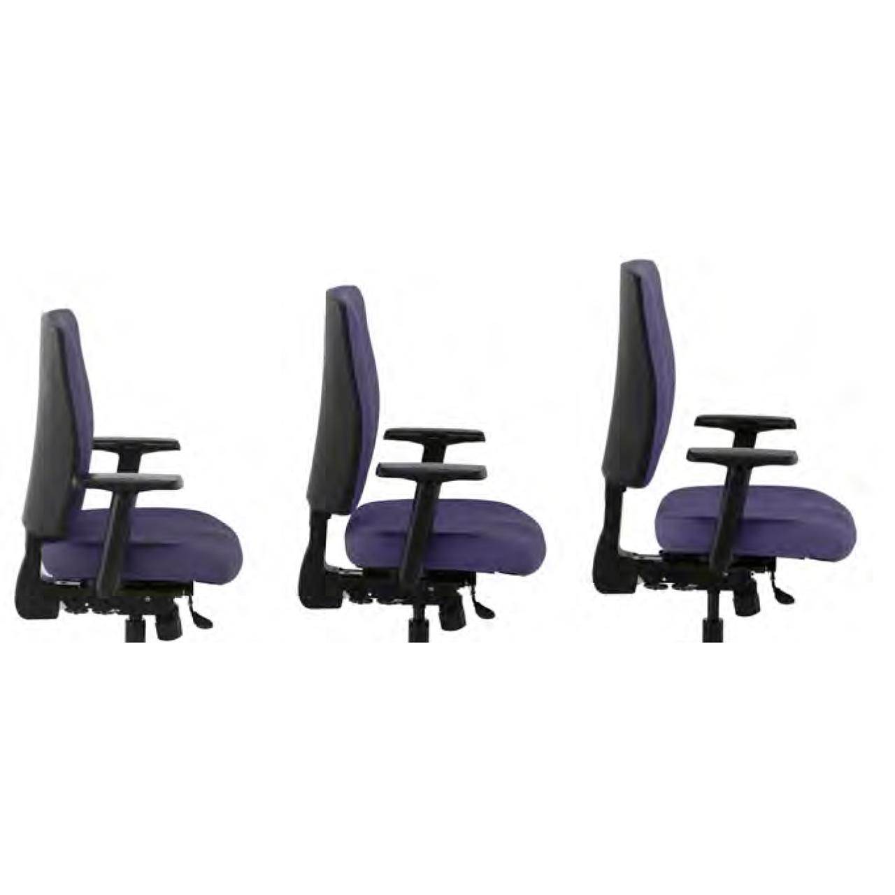 Max loading 150 Kgs Medium or High Back With or Without Adjustable Arms Independent Seat and Back Headrest Synchro Mechanism Coccyx Cut-out Black or Polished Base Memory Foam Seat For fabric options, please see downloads.