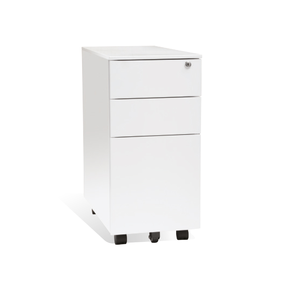 Available in two width options: 300mmW or 400mmW. Internally the pedestals feature two x personal drawer and one x filing drawer that accepts A4 and Foolscap files, and finished in Silver (RAL9006). The pedestal is complete with an additional Anti-tilt castor to prevent the unit from tipping when opened.