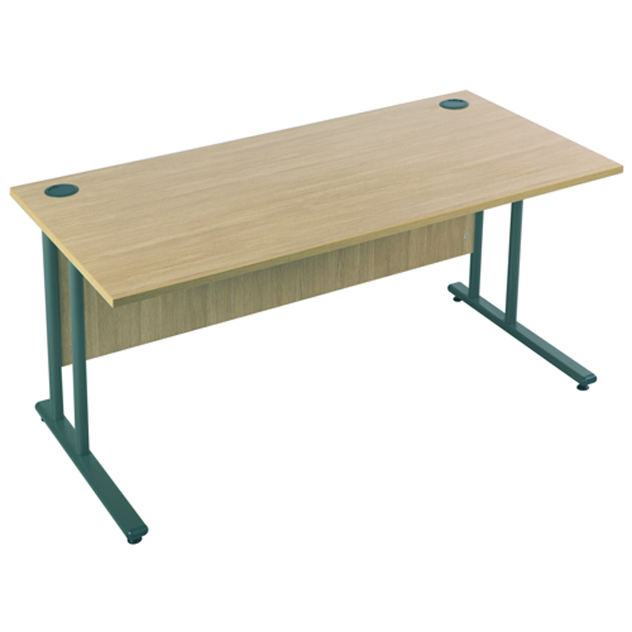 Primary range of desking with cantilever frame. Uniquely welded on inside of tube for additional strength and to prevent unsightly weld. Cantilever frame finished in Silver, Grey or Black. 25mm MFC top with matching 2mm ABS edging. Top complete with 2 x 80mm dia cable exit pods. Available in Beech, Maple, Oak or White.