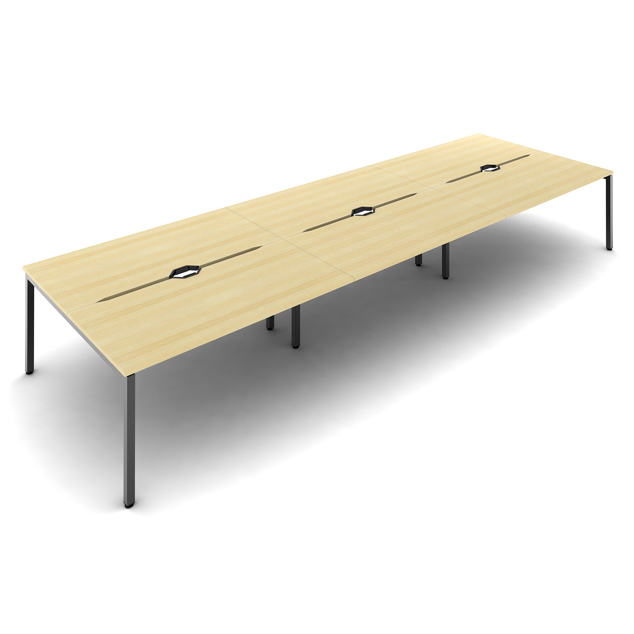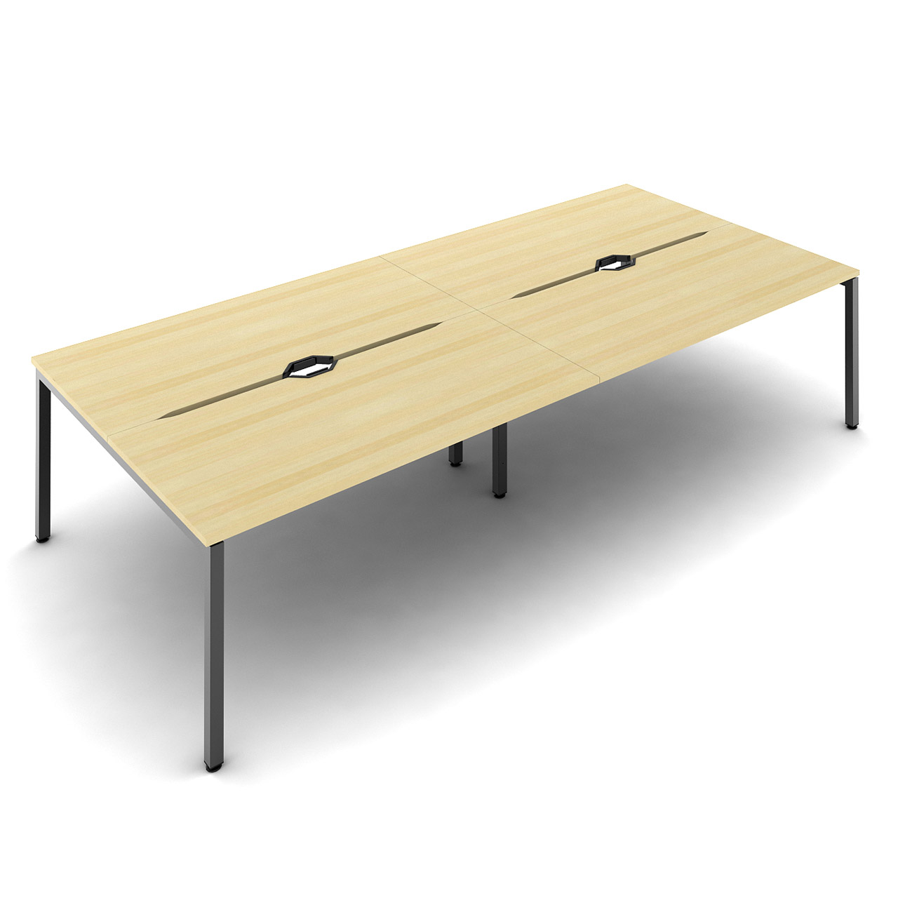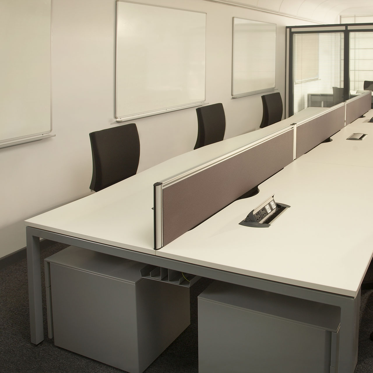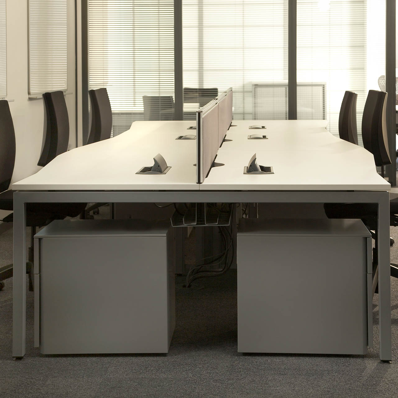 Scape Range double run bench desking features shared components allowing colleagues to communicate and collaborate without interference of internal leg obstructions. Each desk space can have either individual or shared Cable management trunking to route cables to and from the desk top, which are wide enough to accept power modules. The clean lines of this innovative double sided desking allow its use in a variety of linear configurations.