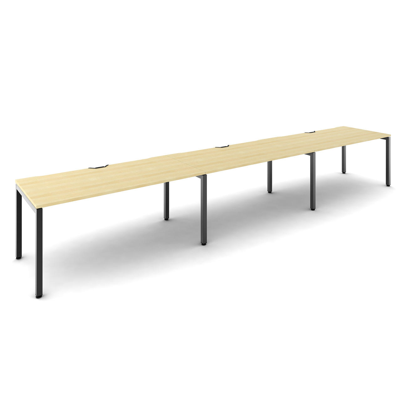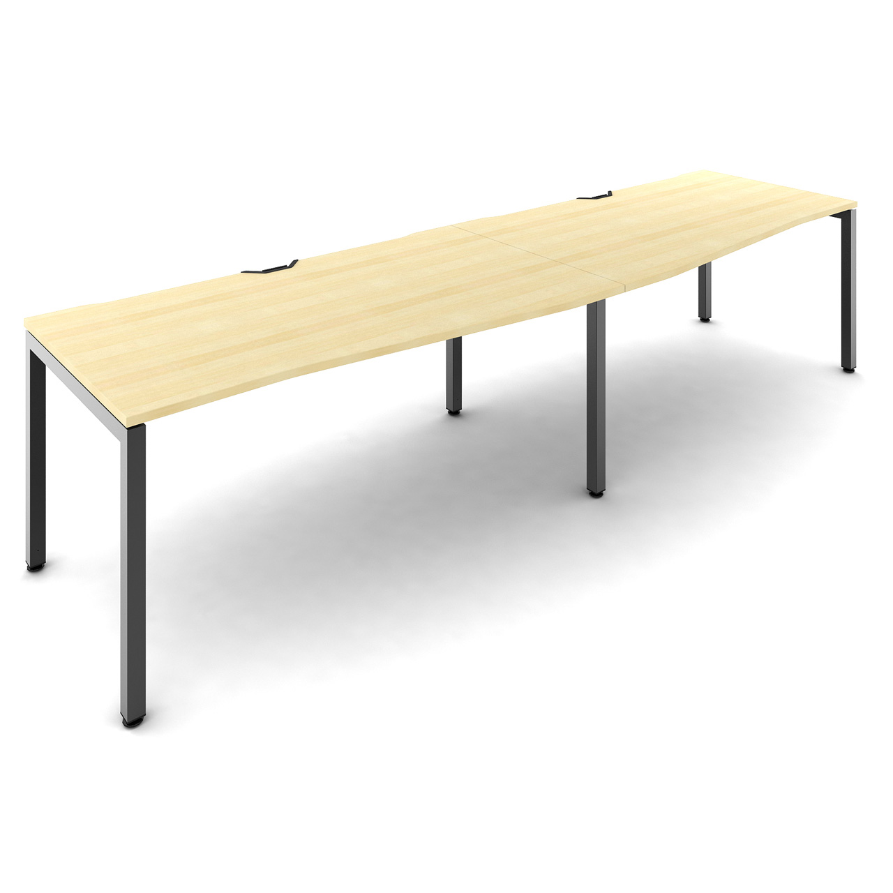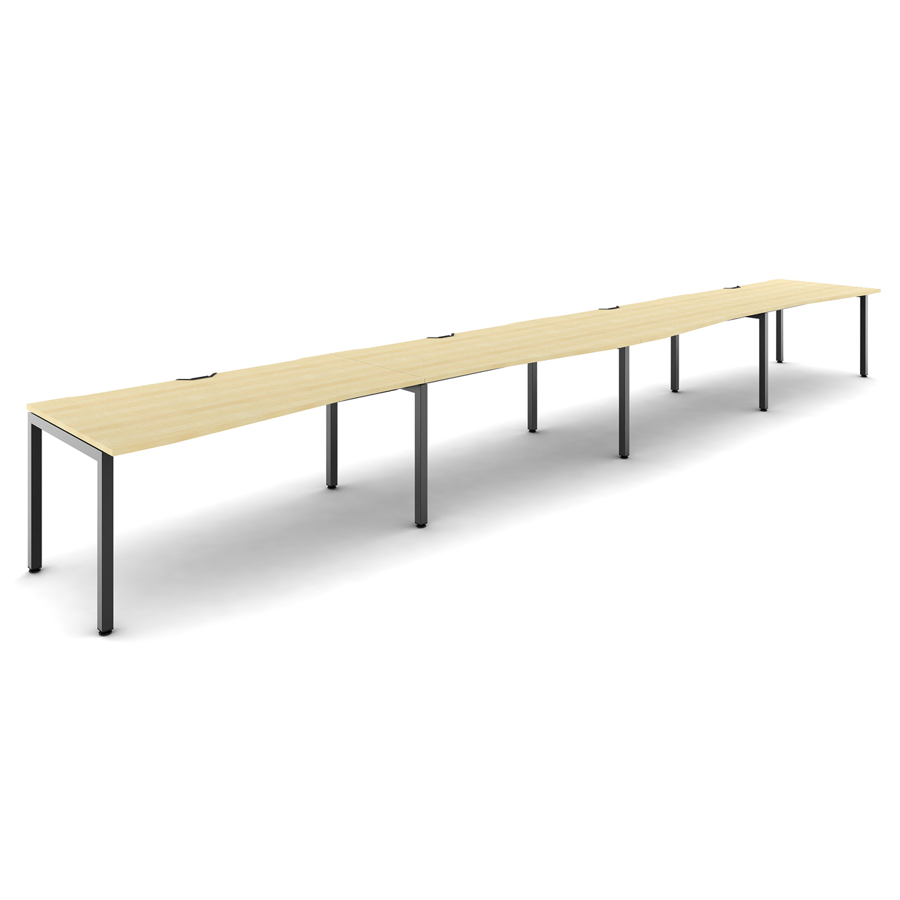 Scape Range single run bench desking features shared components allowing colleagues to communicate and collaborate without interference of internal leg obstructions. Each desk space can have either individual or shared Cable management trunking to route cables to and from the desk top, which are wide enough to accept power modules. The clean lines of this innovative double sided desking allow its use in a variety of linear configurations.