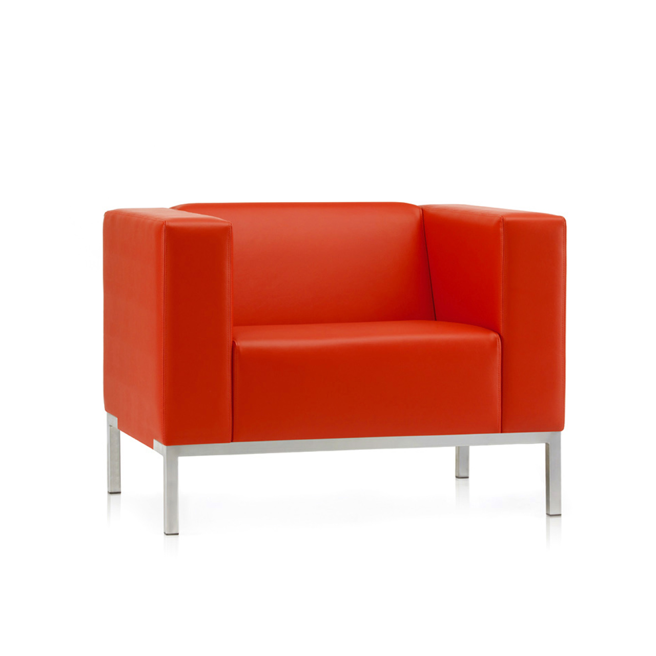 Box represents function and design, providing a robust solution for open space sitting. The simplicity of its form is achieved by the angular construction. The combination of leather and satin chrome finish create a unique style.
