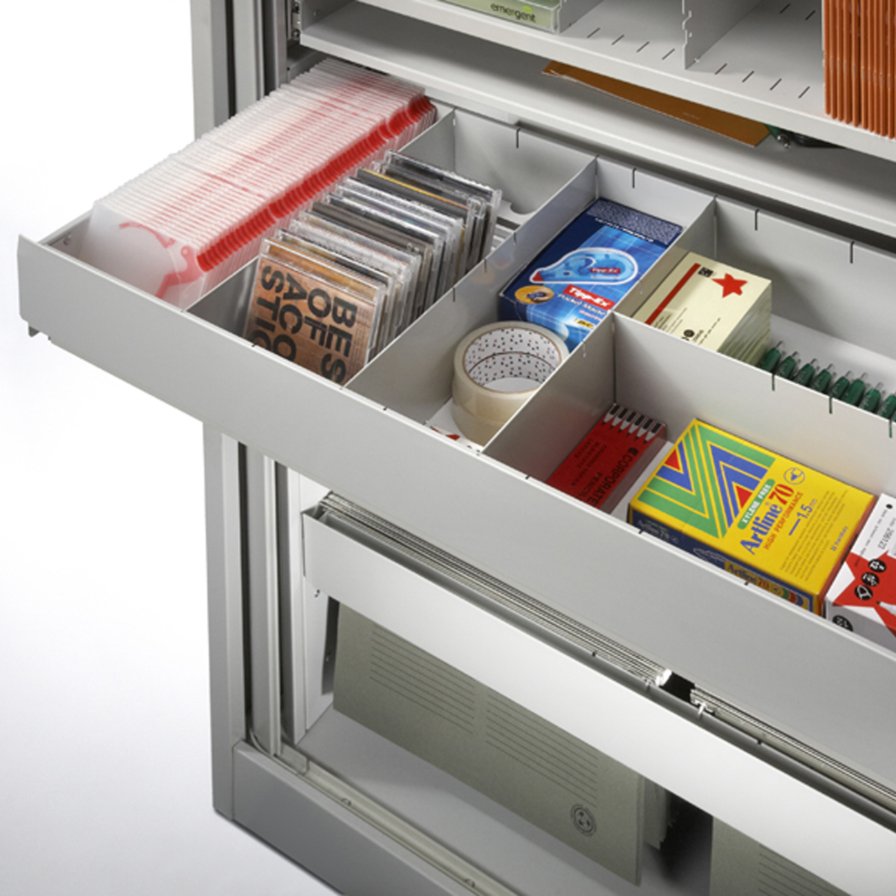 Takes up only one slot in your cupboard and is great for resting on when you are filing.
