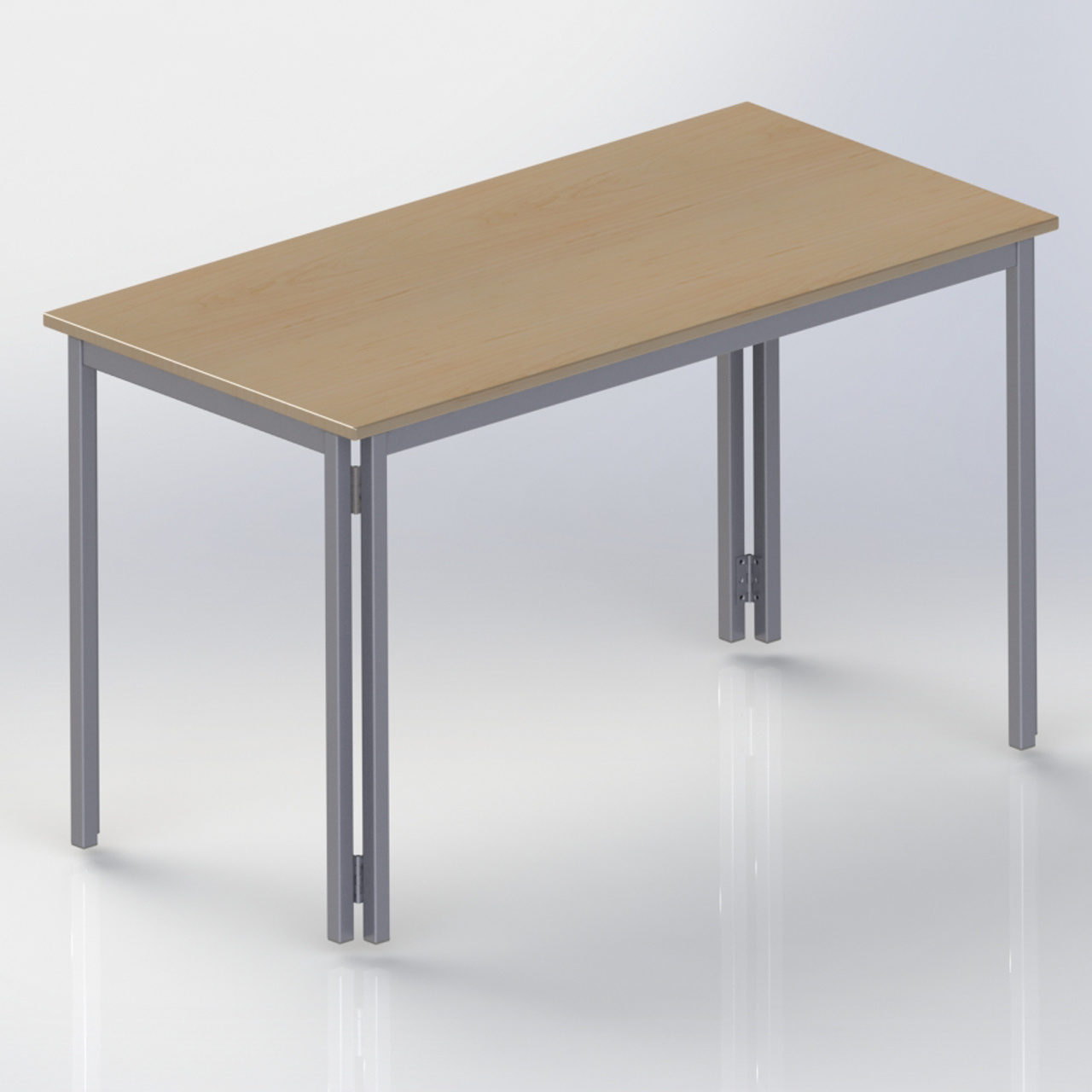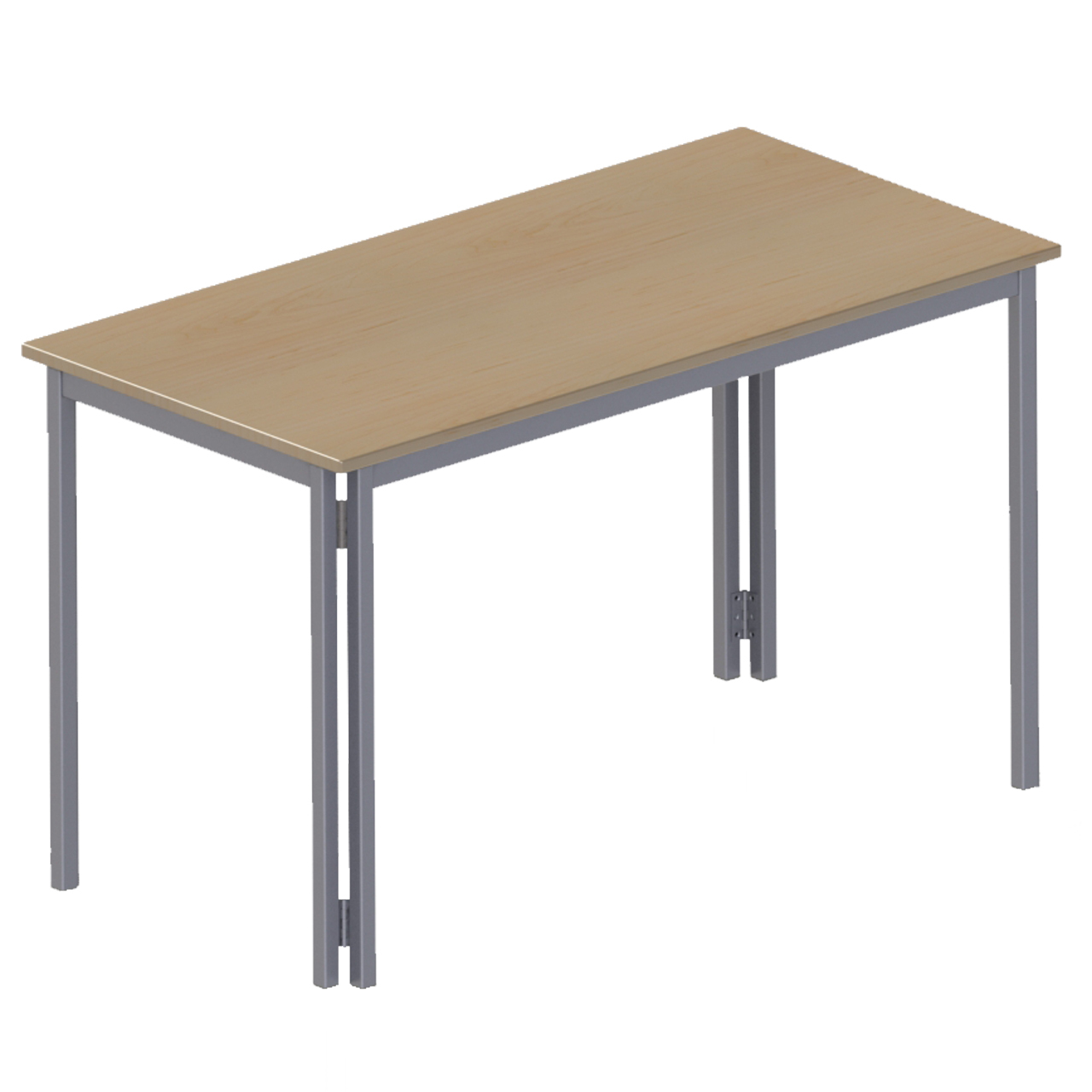 Hinged frames fold flat with top that lifts off. Table top finished in 25mm MFC with 3mm ABS Edging. 30mm Steel frame. Options; Beech, Maple, Oak or White Tops with Silver Frame.